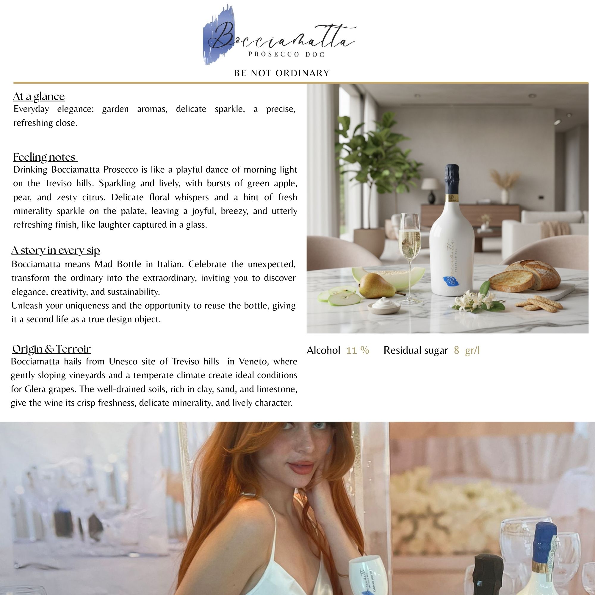 Our premium Prosecco comes in a striking white bottle made to live beyond the last sip.